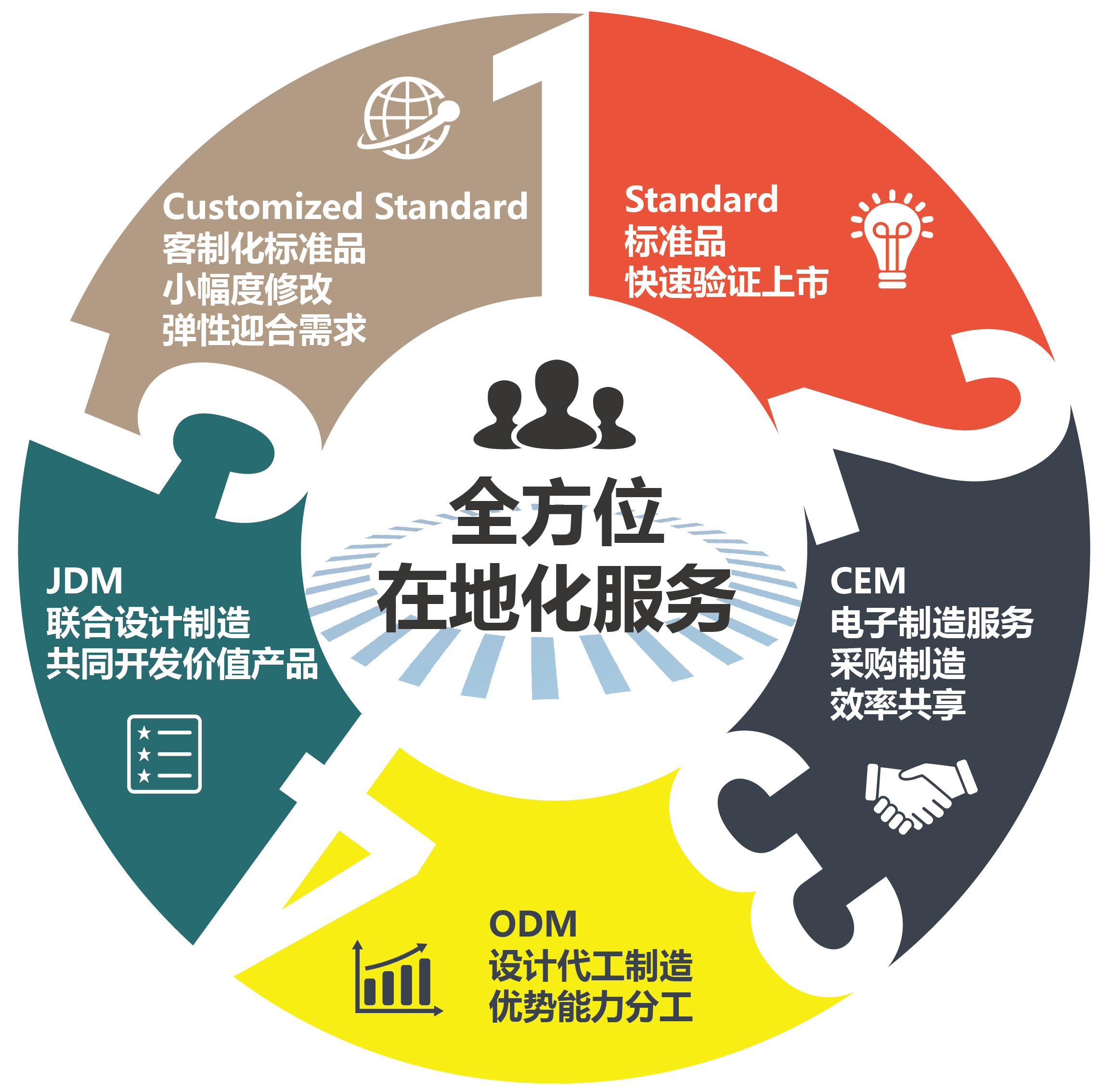 CEM(Contract Electronics Manufacturer):即電子制造服務,我們可以為客戶提供一整套的服務方案,不僅包括生產與制造電子產品,還為客戶提供產品運輸、物料選擇、系統組裝、維修等一系列服務。同時也會尊重客戶知識產權,保證客戶產品品質第一。